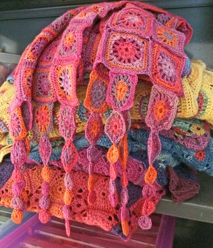 The bit more is this photo of the Ariana Scarf on top of a pile of blankets all waiting to be photographed.