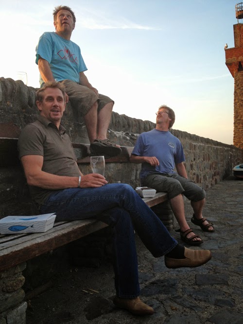 The boys sat around on the harbour wall in the evening summer sun, enjoying a few pints and talking utter nonsense to each other.