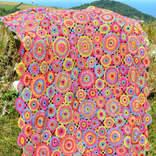 I spent the next few months designing squares and triangle blankets for the book, then mid June 2014 I decided to play with the circles again, this time I wanted to just have circles on their own with no squares surrounding them.