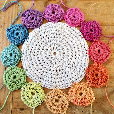 After I had crocheted a couple of base circles I realised I didn't have time to do both yarns, so the Drops Alpaca got put back in the basket for another day.