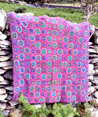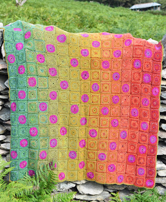 The blankets are all made with the same 2 motif designs and the same layout, but 3 different colour techniques, random, watercolour and a rainbow watercolour.